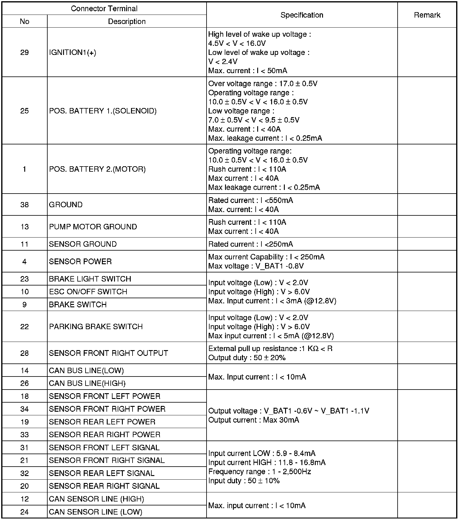 ESC connector input/output