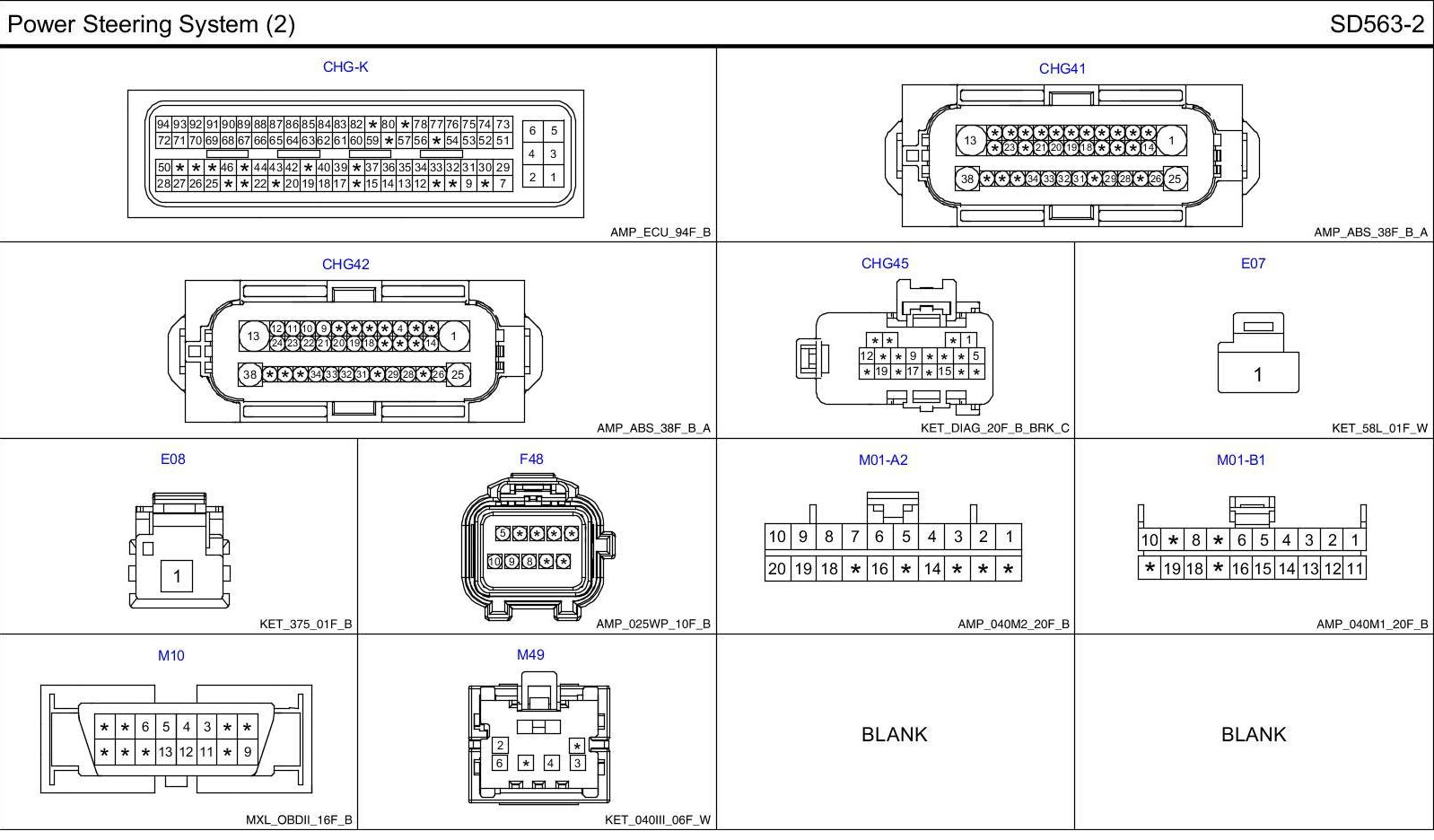 Power Steering System (2) Connector Pin Outs: