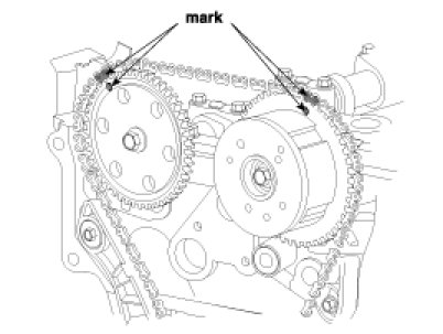 The timing mark of each sprocket should be matched with timing mark (color link) of timing chain at installing timing chain.