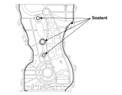 (3) Before assembling the timing chain cover, the liquid sealant Loctite 5900H or THREE BOND 1217H should be applied on the gap between cylinder head and cylinder block.