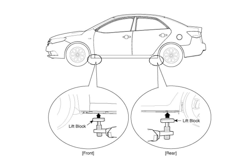 2. Raise the hoist a few inches (centimeters) and rock the vehicle to be sure it is firmly supported.