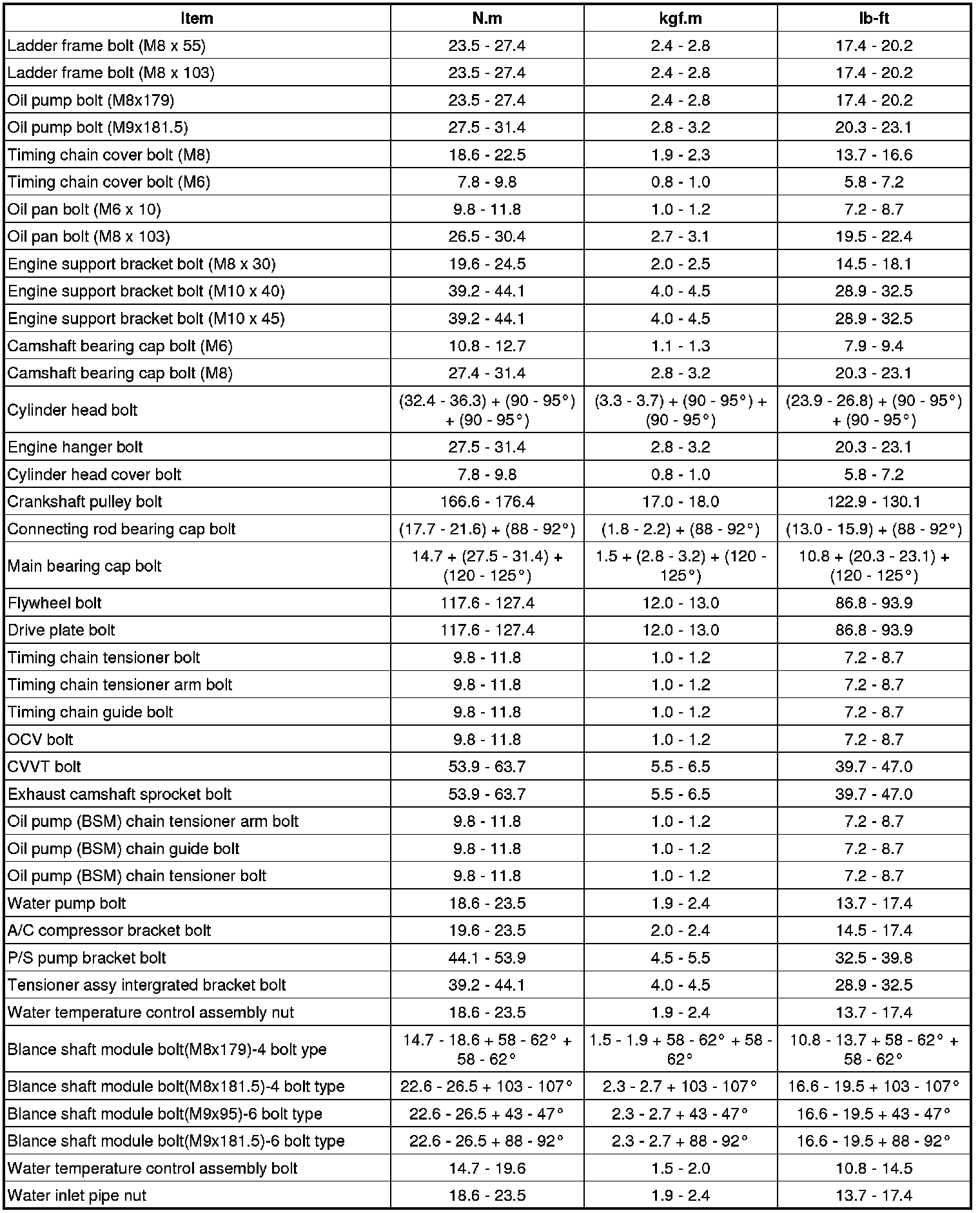 Tightening Torques