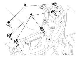 9. Remove the automatic transaxle upper mounting bolt (A-2ea) and the starter motor mounting bolt (B-2ea).