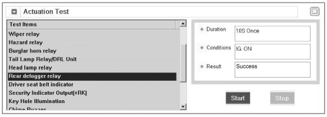 4. To check the input value of rear window defogger switch in force mode, select option "ACTUATION TEST".