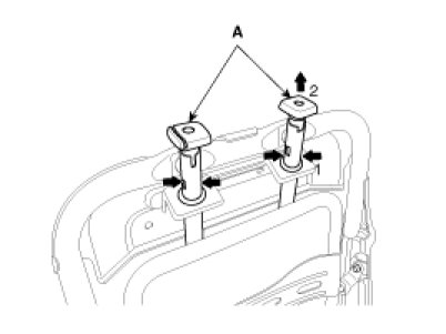 6. Pull out the headrest guides (A) while pinching the end of the guides, and remove them.