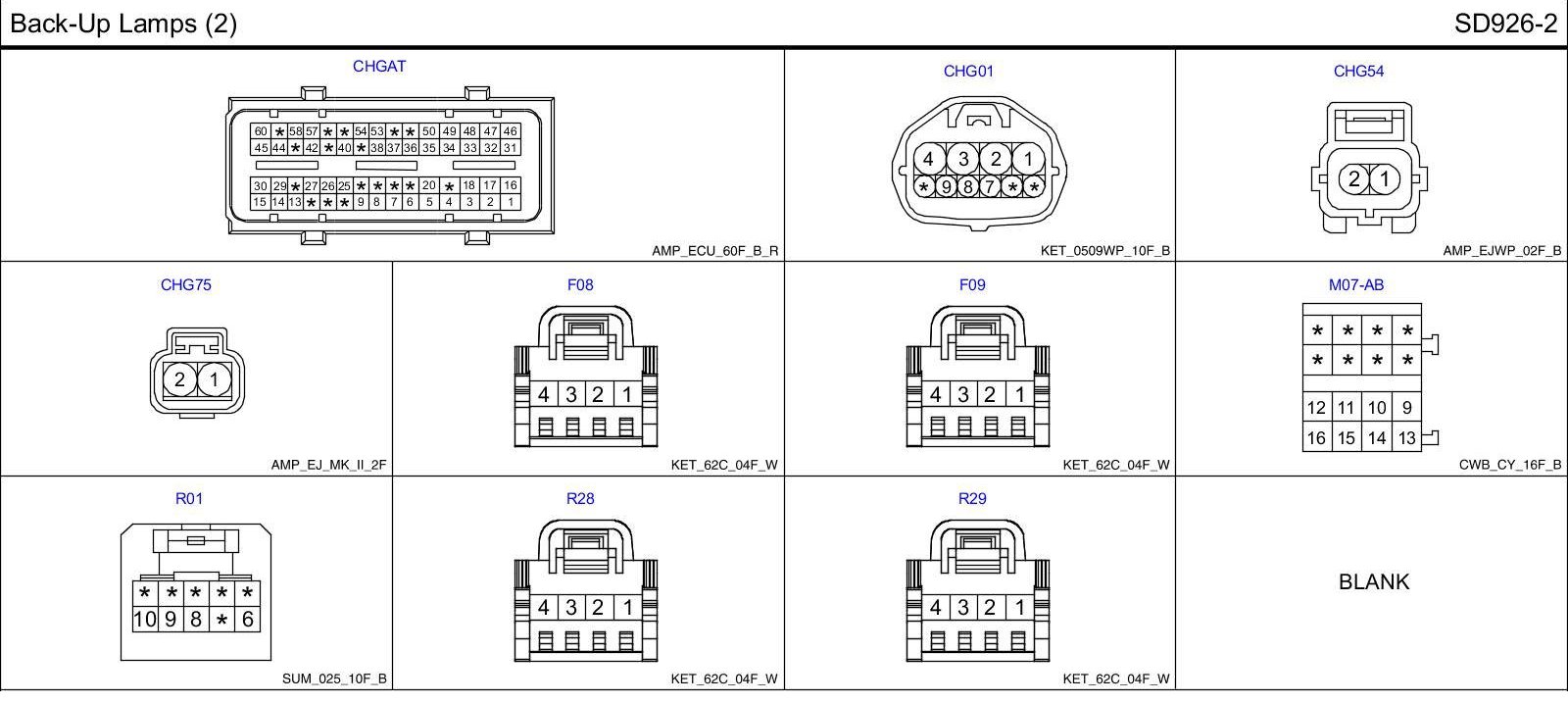 Back-Up Lamps (2) Connector Pin Outs: