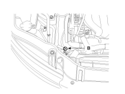 1. Connect an R-134a refrigerant Recovery/Recycling/Charging System (A) to the high-pressure service port (B) as shown, following the equipment manufacturer's instructions.