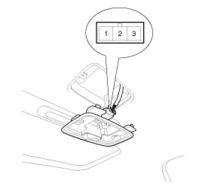 1. Remove the room lamp assembly then check for continuity between terminals.