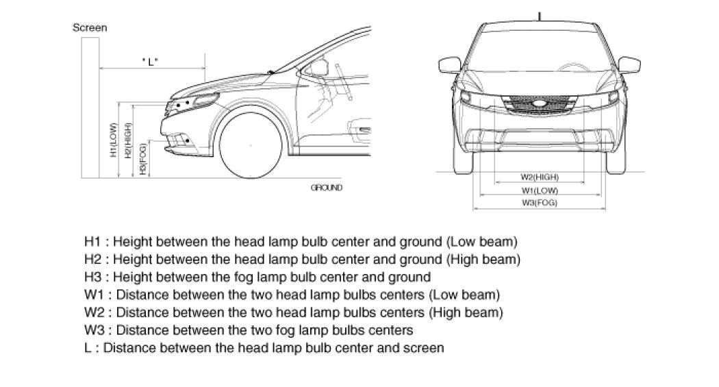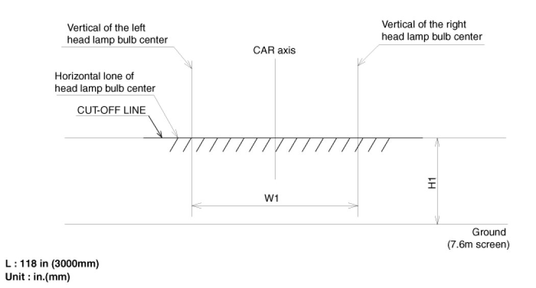 The front fog lamps should be aimed as the same manner of the head lamps aiming.