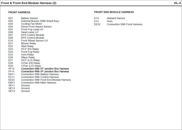 Front & Front End Module Harness Index: