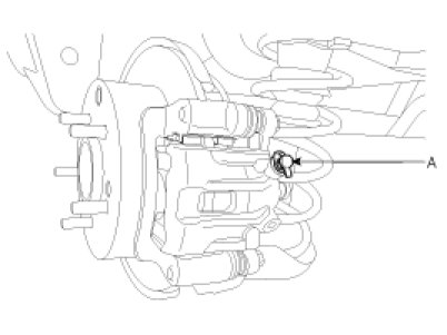 3. Loosen the right-rear brake bleed screw (A) to allow air to escape from the system. Then tighten the bleed screw securely.