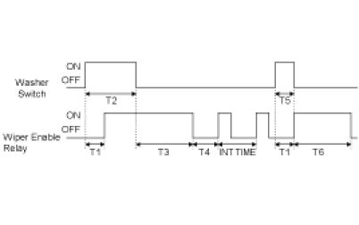 (1) Turn Wiper Enable Relay ON after T1 when turning Washer switch ON at the status of IGN2 ON and if the input of Washer switch is between 0.06 and 0.2sec, turn the output of Wiper Enable Relay OFF after T3.But, ignore the input of Washer switch occurred while Wiper Enable Relay is being operated and accept it from the input of Washer switch after operating Wiper Enable Relay.