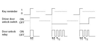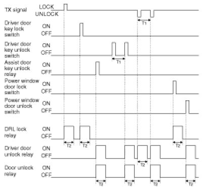 (3) Turn Driver door unlock relay output ON during T2 when receiving TX UNLOCK signal. However, turn Driver door unlock relay and Door unlock relay output during T2 if TX UNLOCK is received within T1.