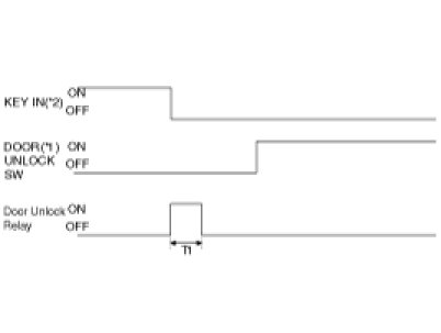 (2) When Driver Door Key Unlock and Passenger Door Key Unlock turn ON, turn Door Unlock Relay and Driver Door Unlock Relay output ON during T1.