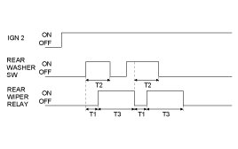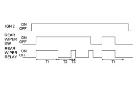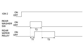 1. Turn rear wiper relay ON after 1 sec. if rear washer SW is ON at the status of IGN2 SW ON and turn rear wiper relay OFF after T3 if turning the input of rear washer SW ON for 0.2 - 0.6 sec.