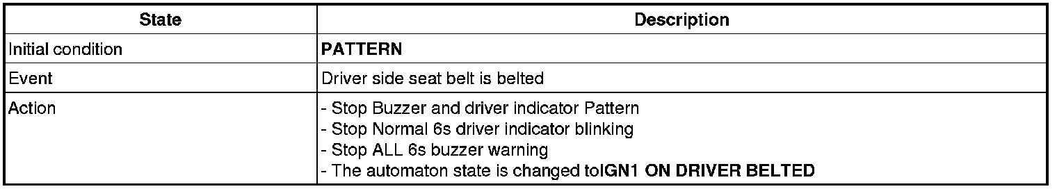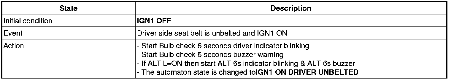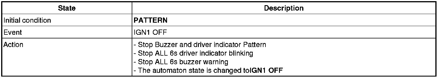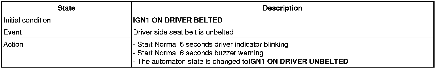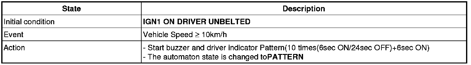 (1) When Driver Door switch is ON at the status of KEY IN ON, Buzzer will be outputted per 0.6sec continuously.
