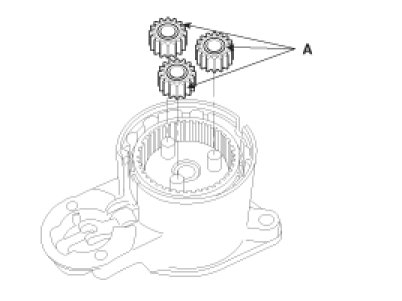 11. Disconnect the stop ring (A), overrunning clutch (B), internal gear (C) and planet shaft (D).