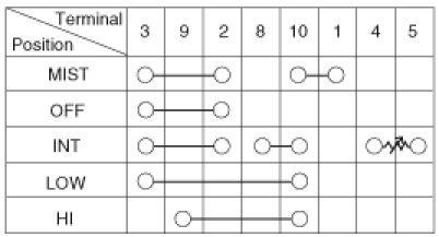 Check for continuity between the terminals while operating the wiper and washer switch. If it is not normal condition, replace wiper and wiper switch.