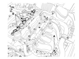 2. Disconnect the injector extension connector (A) and ignition coil connectors (B).