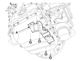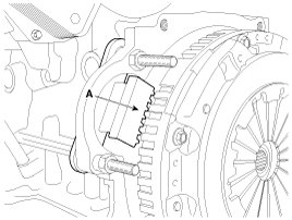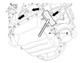 Use the SST (Ring gear stopper, 09231-3K000) (A) to remove the crankshaft pulley bolt, after removing the starter.