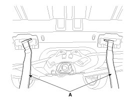10. Remove the fuel tank band installation nuts (A).