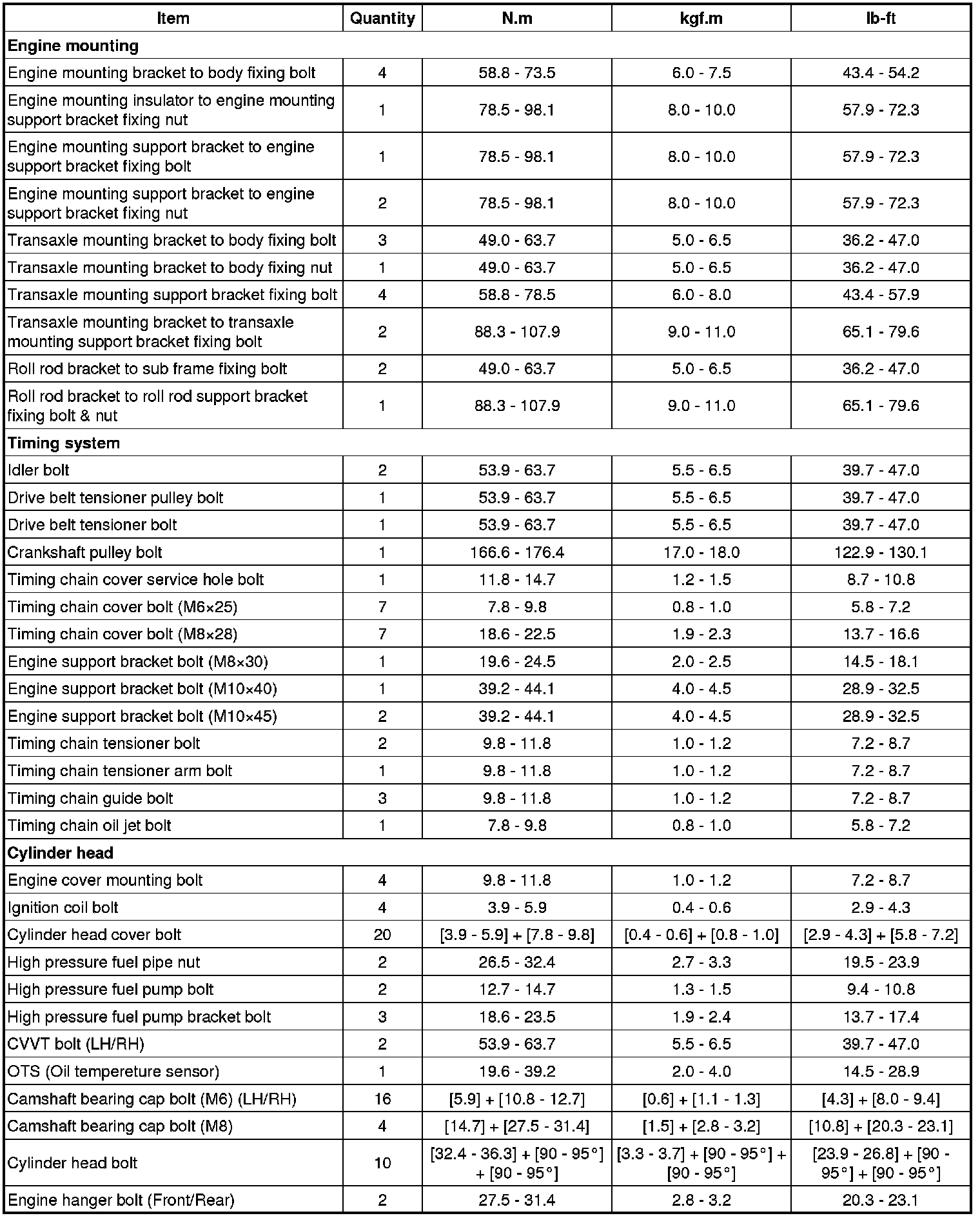 Tightening Torques