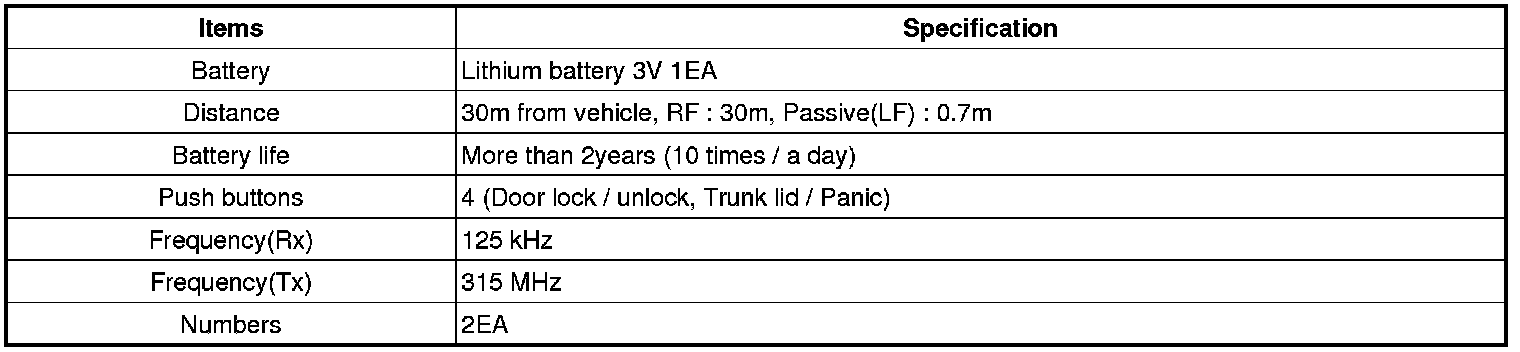Keyless Starting System: Specifications