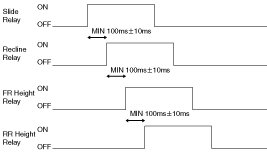 (1) To prevent inrush current from being duplicated during driving motor, automated control of driving motor will defer driving time for 100ms each, and the priority is as follows. SLIDE > RECLINE > Front rear height > rear right height