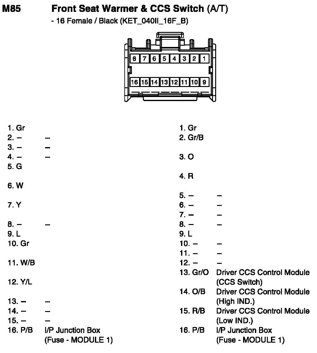 M85 Front Seat Warmer & CCS Switch (A/T):