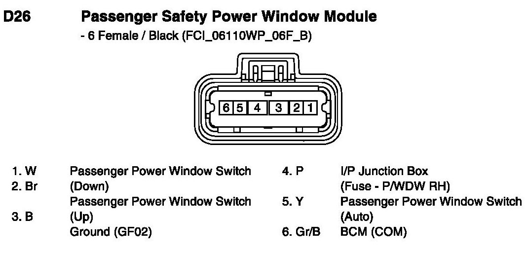 D26 Passenger Safety Power Window Module: