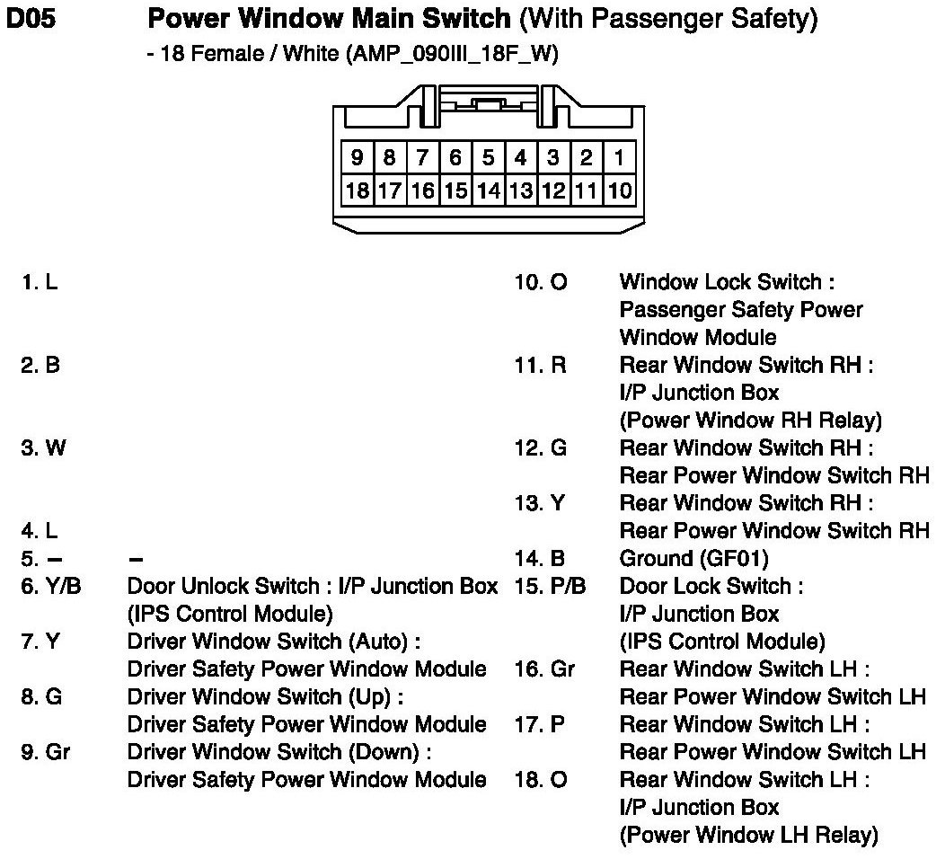 D05 Power Window Main Switch (With Passenger Safety):