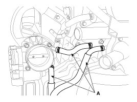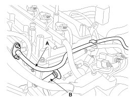 10. Disconnect the fuel hose (A) and the PCSV (Purge control solenoid valve) hose (B).