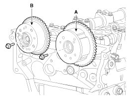 15. Remove the intake CVVT assembly (A) and exhaust CVVT assembly (B).