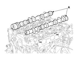When removing the CVVT assembly bolt, prevent the camshaft from rotating by using a wrench at position A.