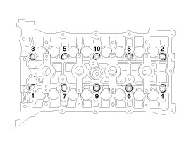 (1) Using triple square wrench, uniformly loosen and remove the 10 cylinder head bolts, in several passes, in the sequence shown. Remove the 10 cylinder head bolts and plate washers.