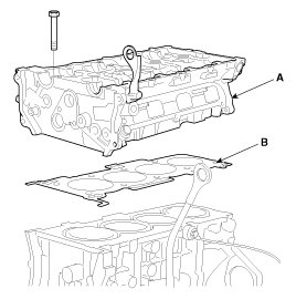 (3) Remove the cylinder head gasket (B).