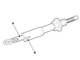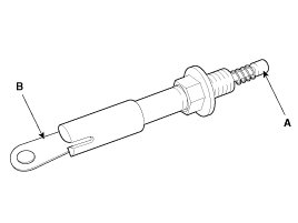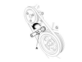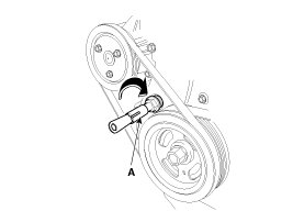 B. Insert a ratchet holder through the service hole by turning the holder body (A) clockwise until the end of the center rod touches the tensioner ratchet.