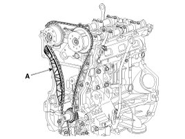 2. Inspect the tensioner arm and chain guide for abnormal wear, cracks, or damage. Replace as necessary.