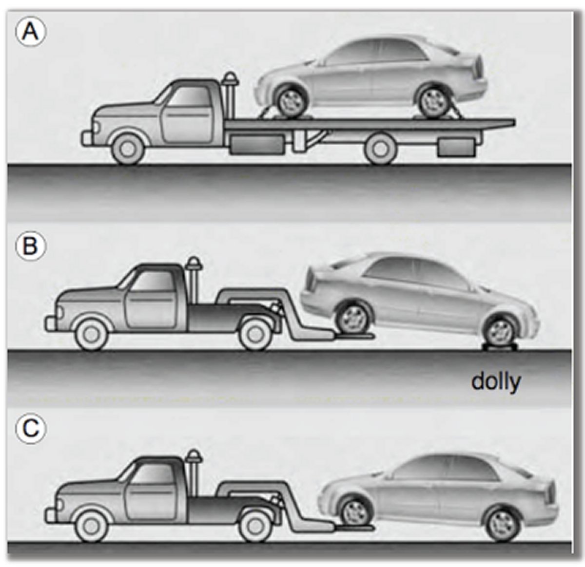 Towing a Hybrid can be performed like any other FWD vehicle. Order of preference is A, C & B.