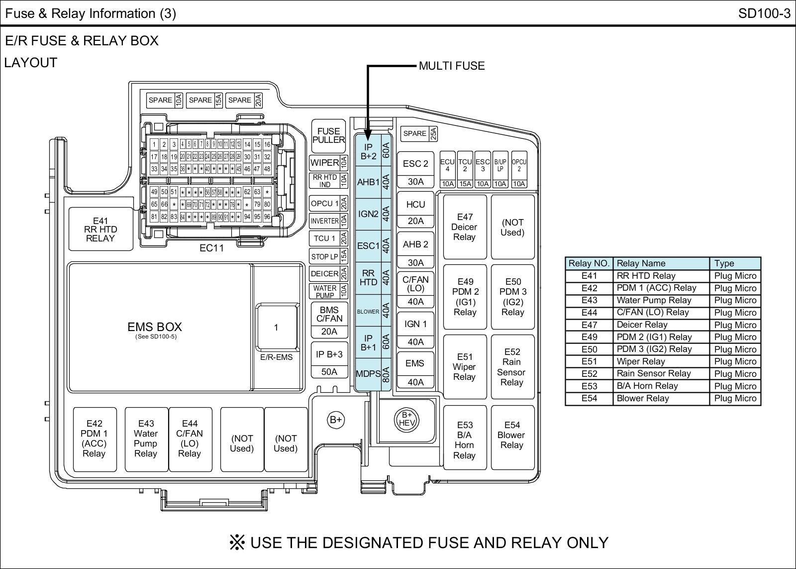 E/R Fuse & Relay Box Circuit Details: