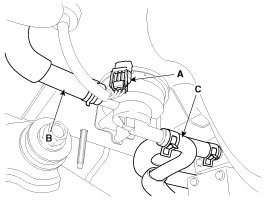 3. Disconnect the ventilation hoses (B,C).