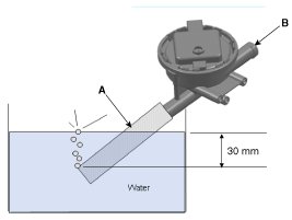 5. After immersing the hose (A) in water, Apply more than 6 mbar (positive) pressure to Atmosphere port (B).