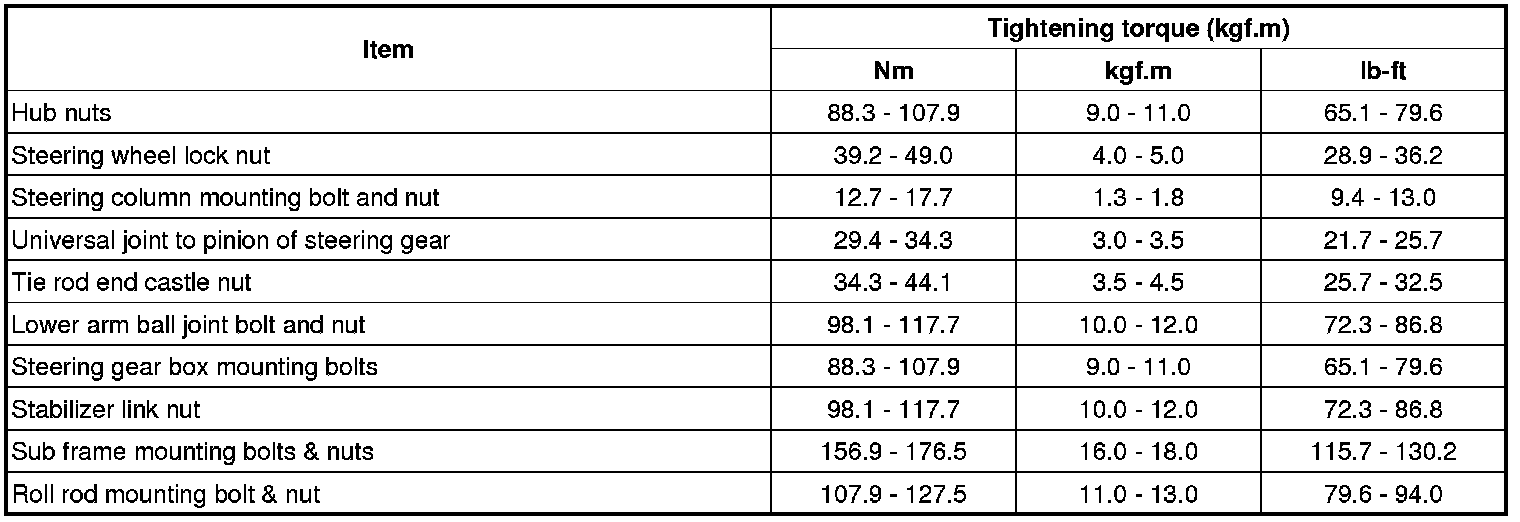 Tightening Torques