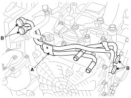 6. Remove the AT tube (A) after removing eye bolt (B).