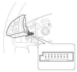 5. Remove the steering wheel remote control switch connector (A) after loosening the mounting screws.