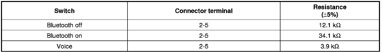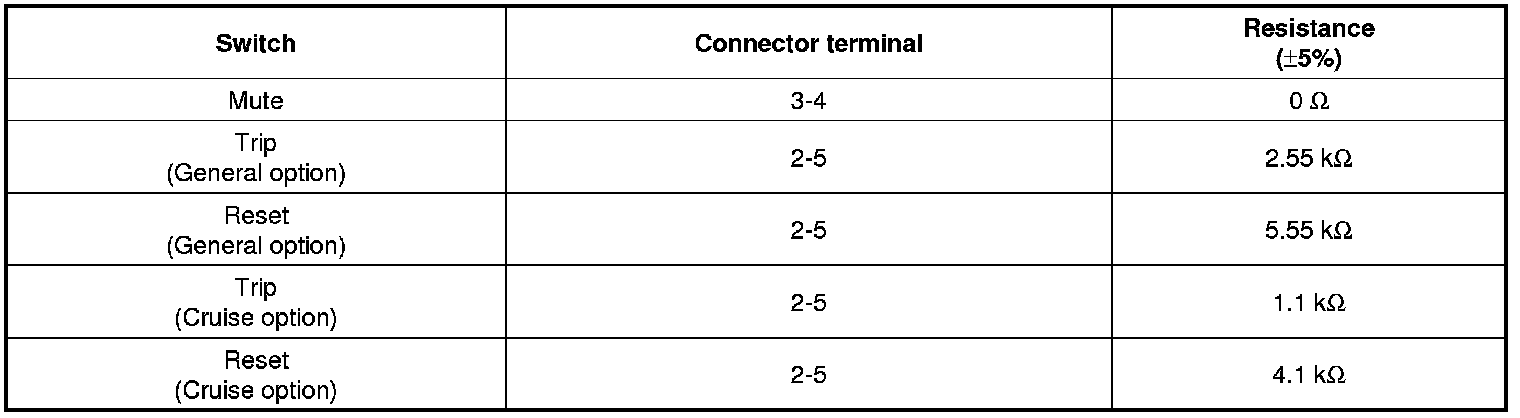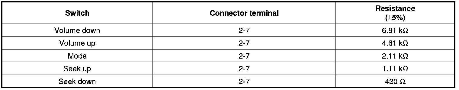 1. Check the audio remote control switch (A) for resistance between connector terminals in each switch position.