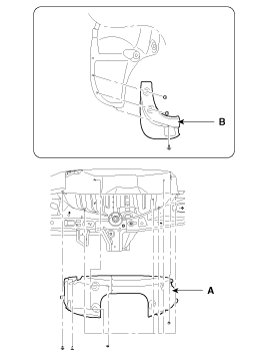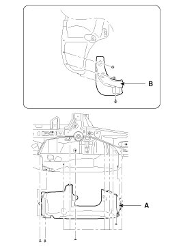 2. After loosening the mounting clips and screws, then remove the front wheel guard (A), mud guard (B).