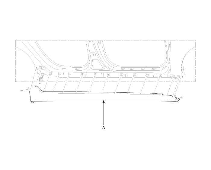 2. Using a screwdriver or remover, remove the side sill molding (A).