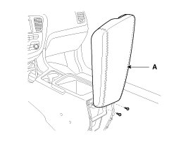 7. After loosening the mounting screws and bolts, then remove the floor console assembly (A).