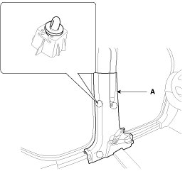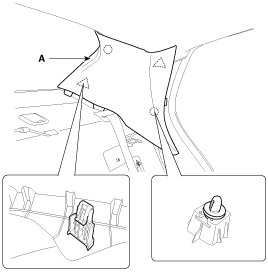 1. Using a screwdriver or remover, remove the rear pillar trim (A).